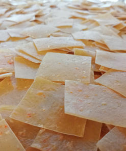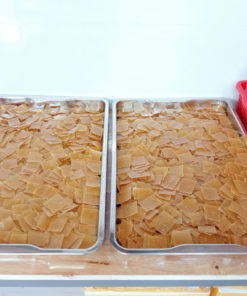 – Tráng bánh, sấy héo vừa phải, cắt thành từng miếng nhỏ, sấy lần 2 cho khô, đóng gói.