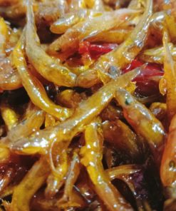 Bánh tráng nướng, cá bống rim, ớt, tỏi, dầu ăn.